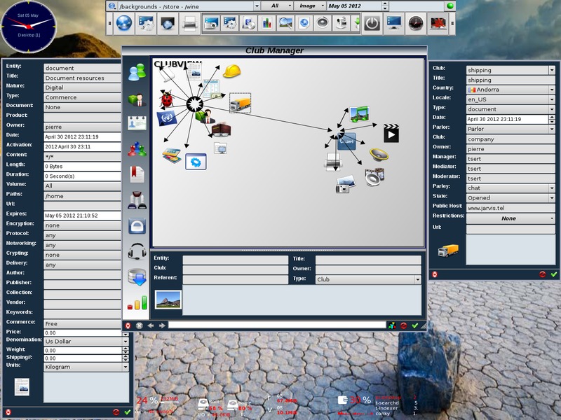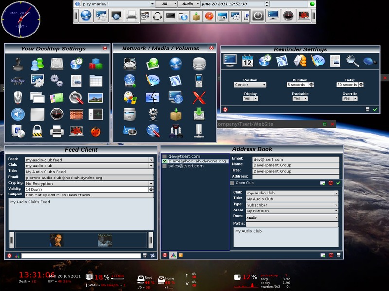 The Breeze::OS Desktop is the default desktop of the Breeze::OS distribution. It is based on the use of plugins, which can be sent across the web.